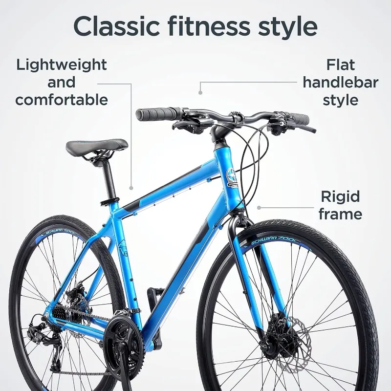 - Quick and agile riding with the 19-inch aluminum fitness frame and rigid fork, with 700c wheels fit riders 5'4" to 6'2" height