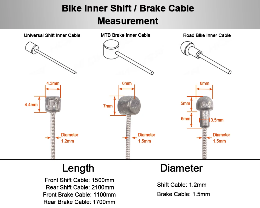 - MTB Brake Cable Length: Front 1100mm/Rear 1700mm