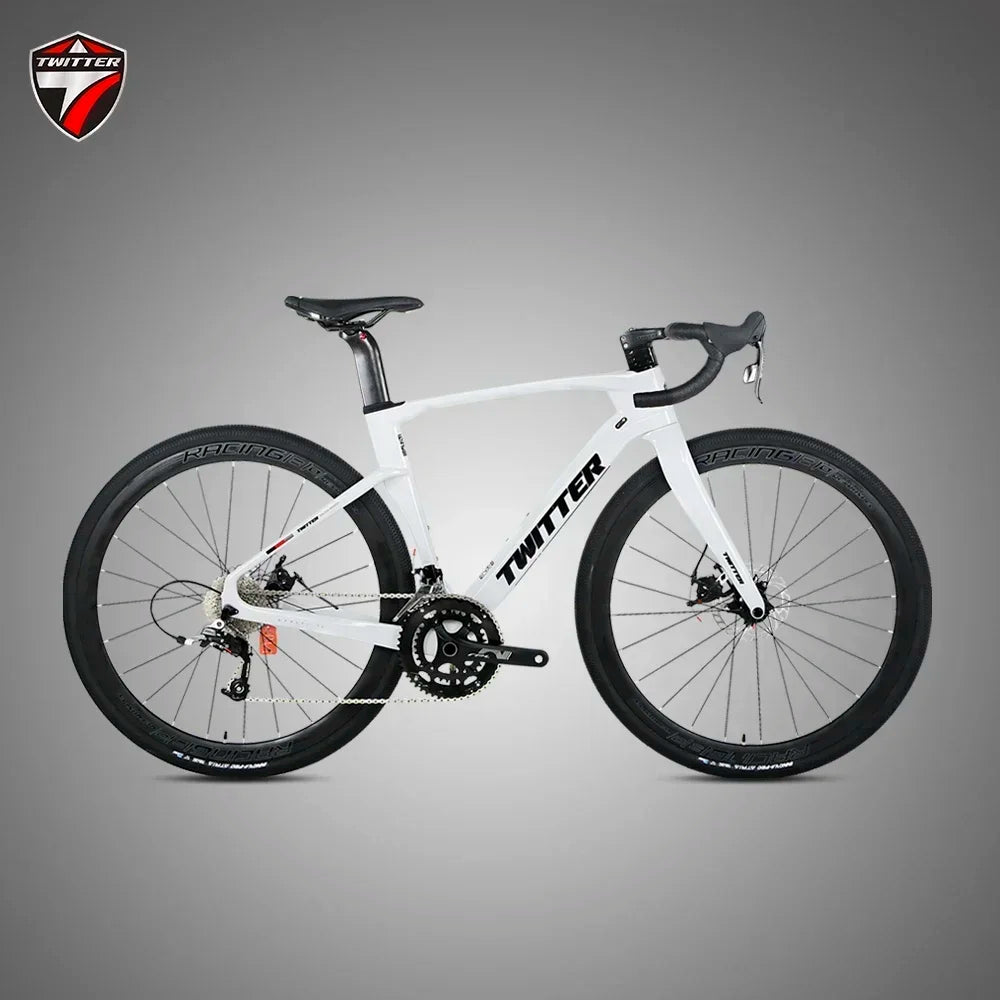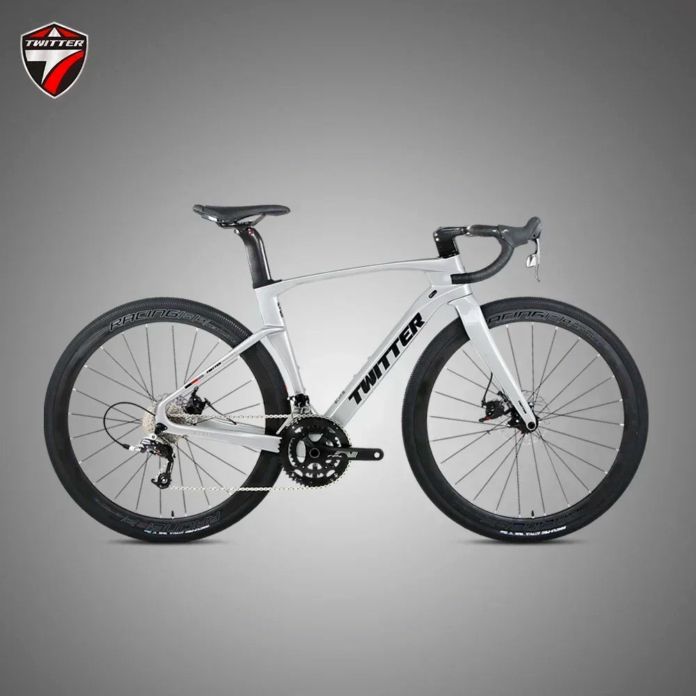 The TWITTER GEX-13 Speed Carbon Fiber Gravel Road Bike presents a formidable and versatile cycling solution. This unisex bicycle is engineered with advanced EPS Technology and features responsive hydraulic disc brakes for optimal control and safety across varied terrains. Equipped with robust 700*40C wheels, it delivers a smooth ride while boasting an impressive load capacity of 150KG, ensuring durability and performance for diverse adventures.