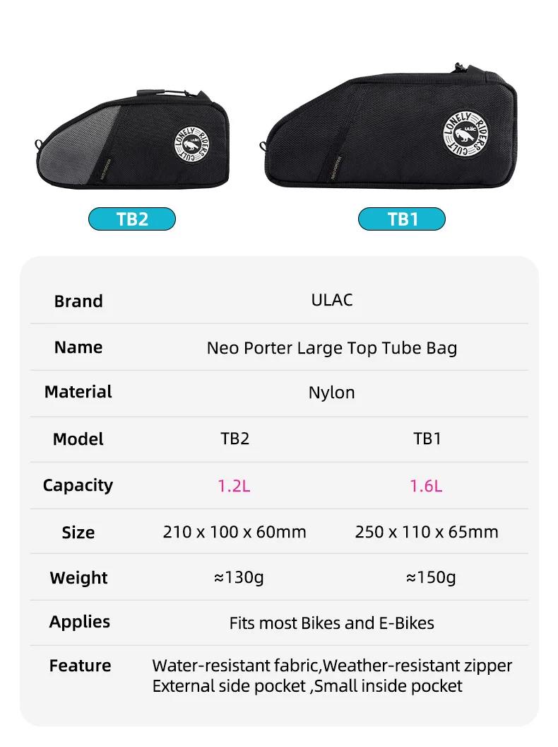 ULAC MTB Bicycle Frame Bag – Durable Top Tube Bag 1.2/1.6L Ultralight Cycling Storage
