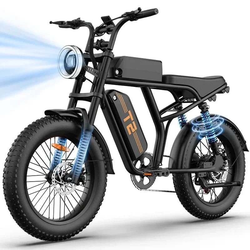 Ride with power, stability, and long-range performance using the URLIFE T2 Electric Bike. Built for commuters and adventure riders, this fat-tire e-bike combines a powerful 500W rear hub motor with a high-capacity 48V 15.6Ah removable lithium battery for reliable daily riding. The 20×4-inch fat tires provide exceptional traction on city streets, sand, snow, and light off-road terrain. Combined with front suspension and mechanical disc brakes, the T2 offers stability and control across different riding conditions. Designed for commuting or recreational rides, the T2 includes multiple riding modes, Shimano gearing, and a durable carbon-steel frame capable of supporting riders and cargo comfortably.