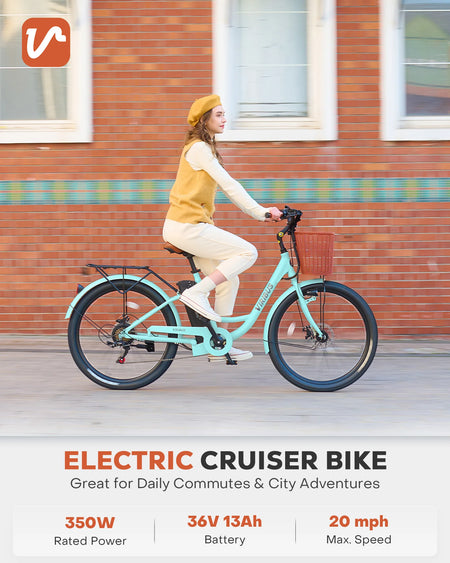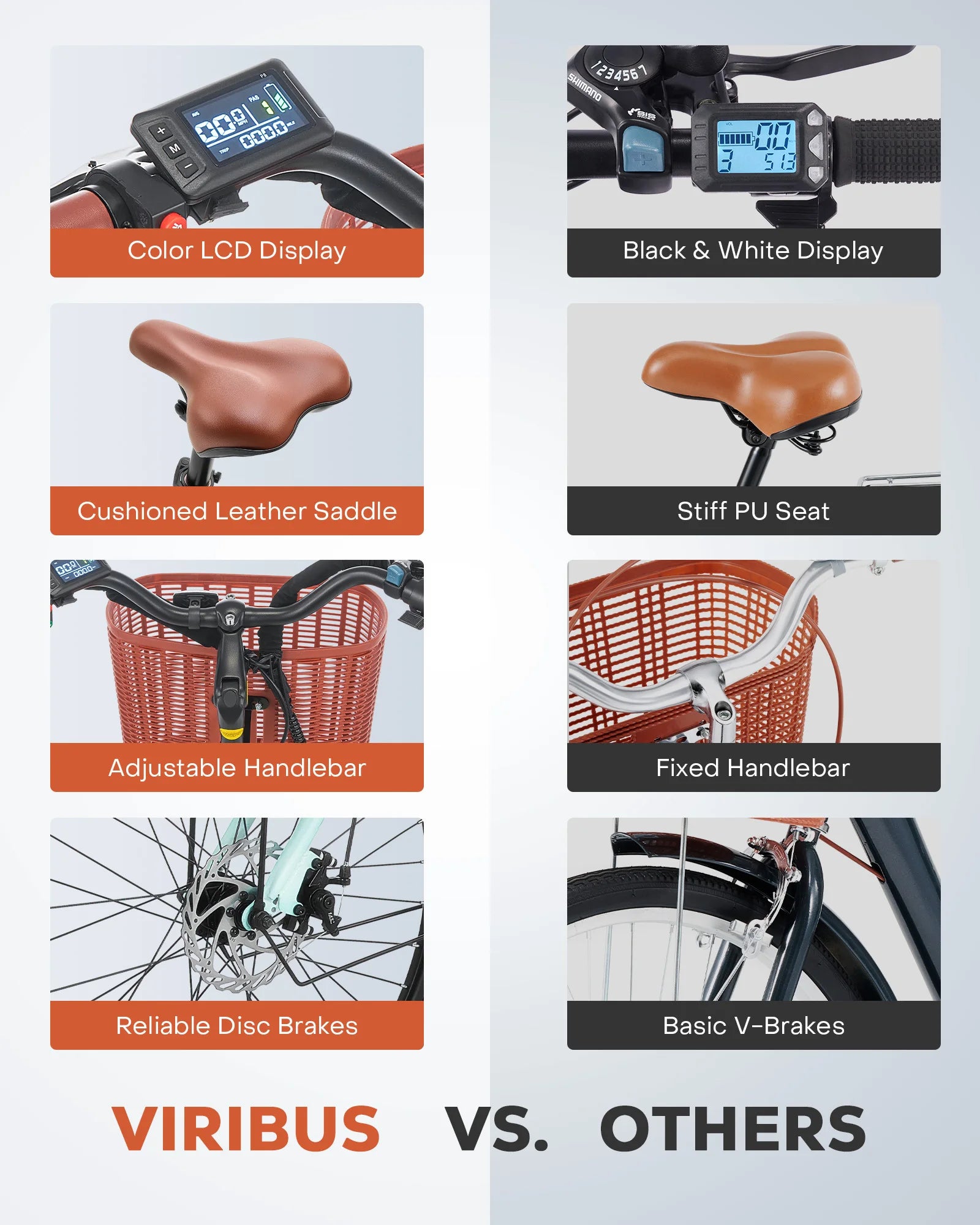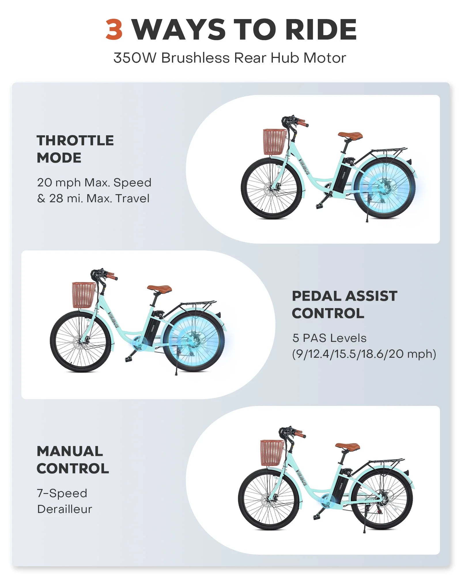 VIRIBUS Electric Bike for Adults 26' 350W Motor Shimano 7 Speed Pedal Assist Dual Disc Brakes 36V Lithium Battery Ebike for Men Women