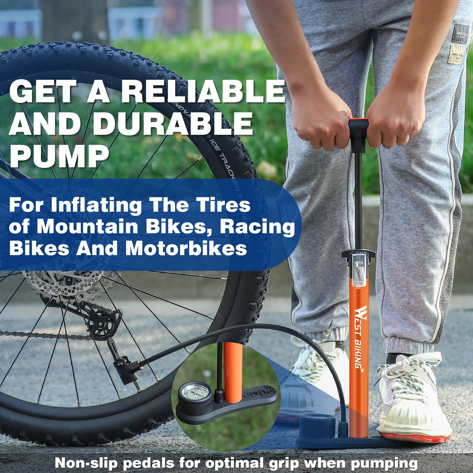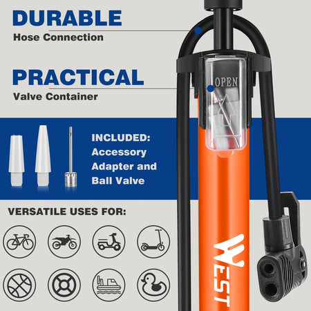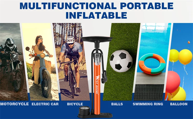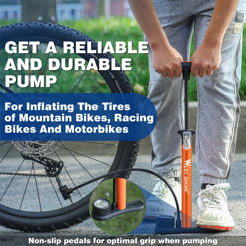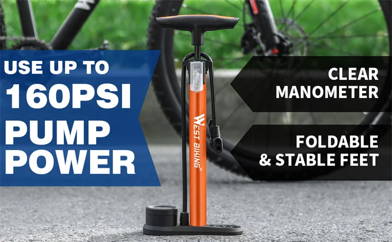 WEST BIKING 160PSI Bicycle Floor Air Pump With Gauge Schrader Presta MTB Road Bike High Pressure Tire Inflator Steel Cycling Pump