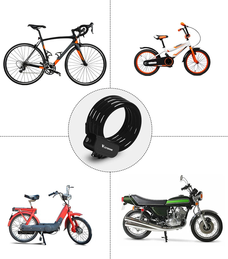 WEST BIKING Bicycle Cable Lock Outdoor Cycling Anti-theft Lock With Keys Steel Wire Security Bike Accessories 1.2M Bicycle Lock