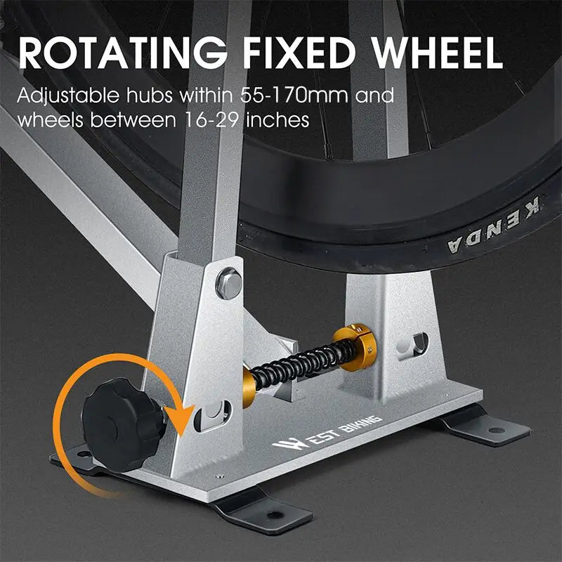 This WEST BIKING Aluminum Alloy Bike Wheel Truing Stand is the perfect tool for bike maintenance. Compact and lightweight, it is easy to store when not in use and its foldable design allows for convenient transportation. Perfect for professional or amateur bike mechanics, this truing stand is a must-have for all bike owners.