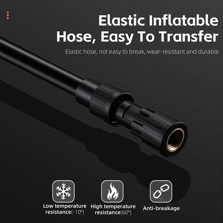 Note:Attention: During continuous use, the pump body and inflation hose may become hot, which is normal. The metal parts of the inflation hose may heat up, please be careful and it is recommended to wear gloves when using.