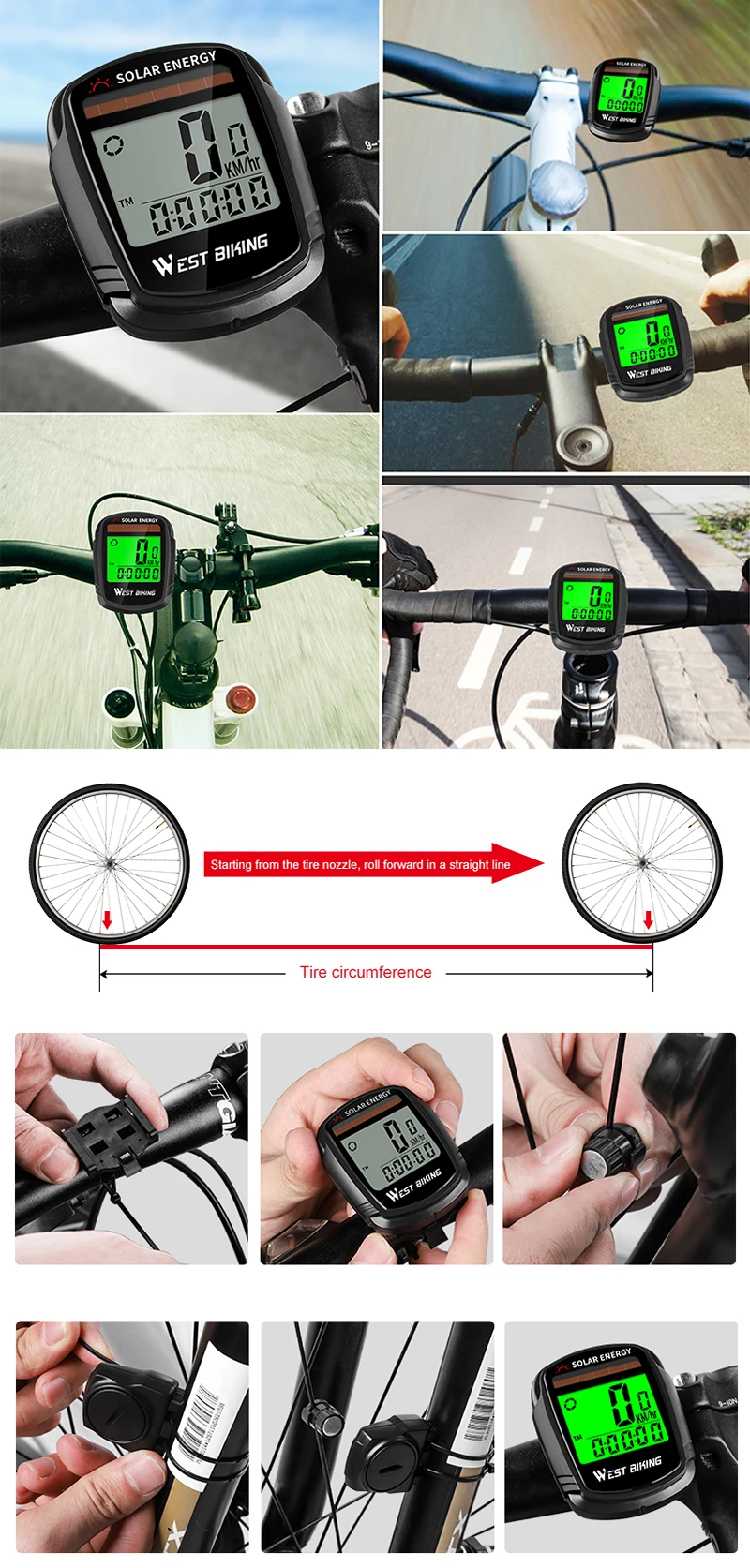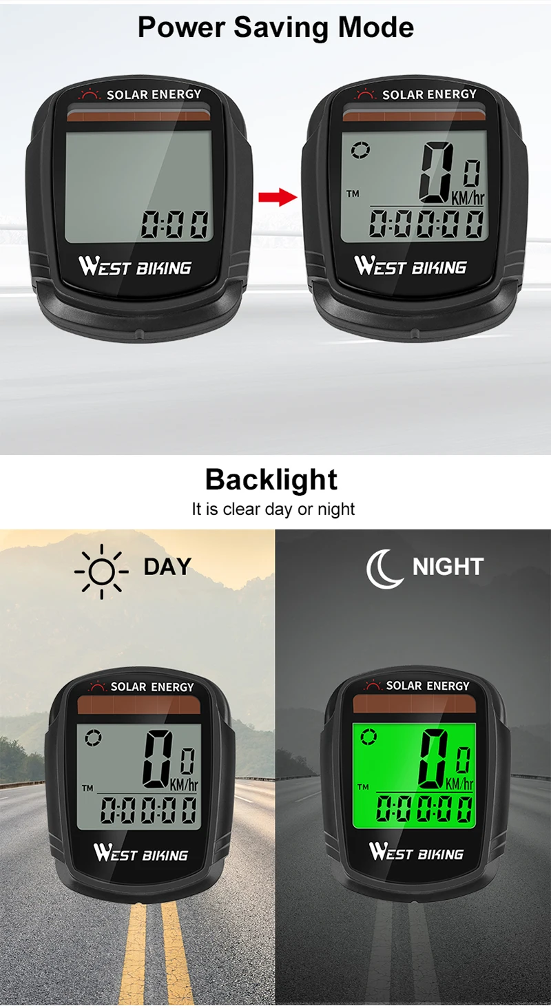 Upgrade your ride tracking with the WEST BIKING Solar Powered Bike Computer. This wireless cycling computer features solar charging support for extended battery life and convenience. It accurately tracks essential riding data such as speed, distance, and riding time, helping you monitor your performance on every trip. The automatic wake-up function activates the device when motion is detected, ensuring hassle-free operation. Built with a waterproof design, it performs reliably in various weather conditions. Easy to install and use, it’s perfect for road cyclists, mountain bikers, and daily commuters seeking a smart and efficient cycling accessory.