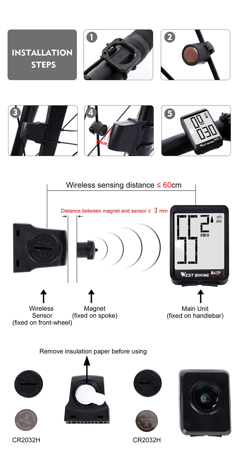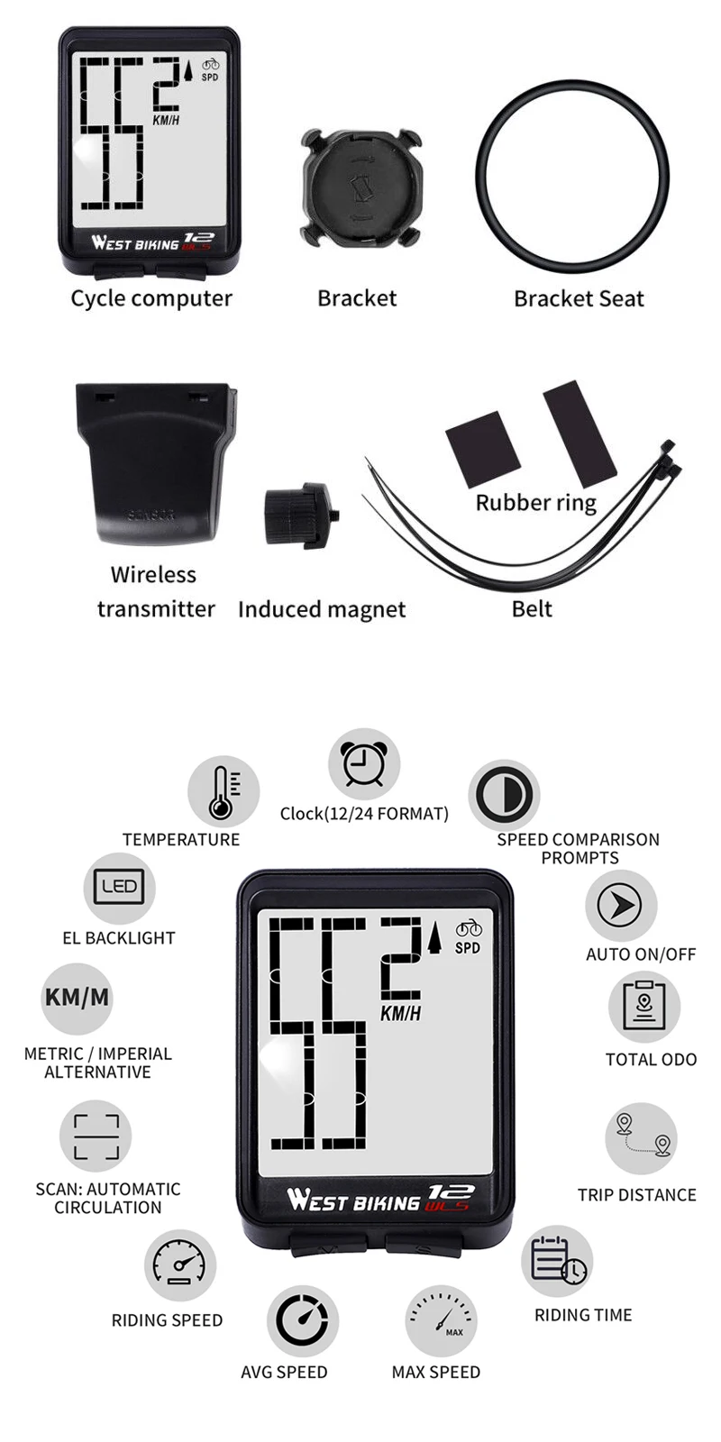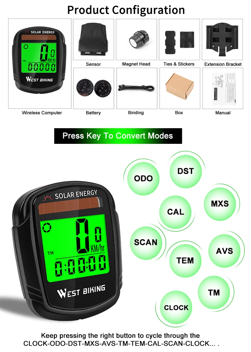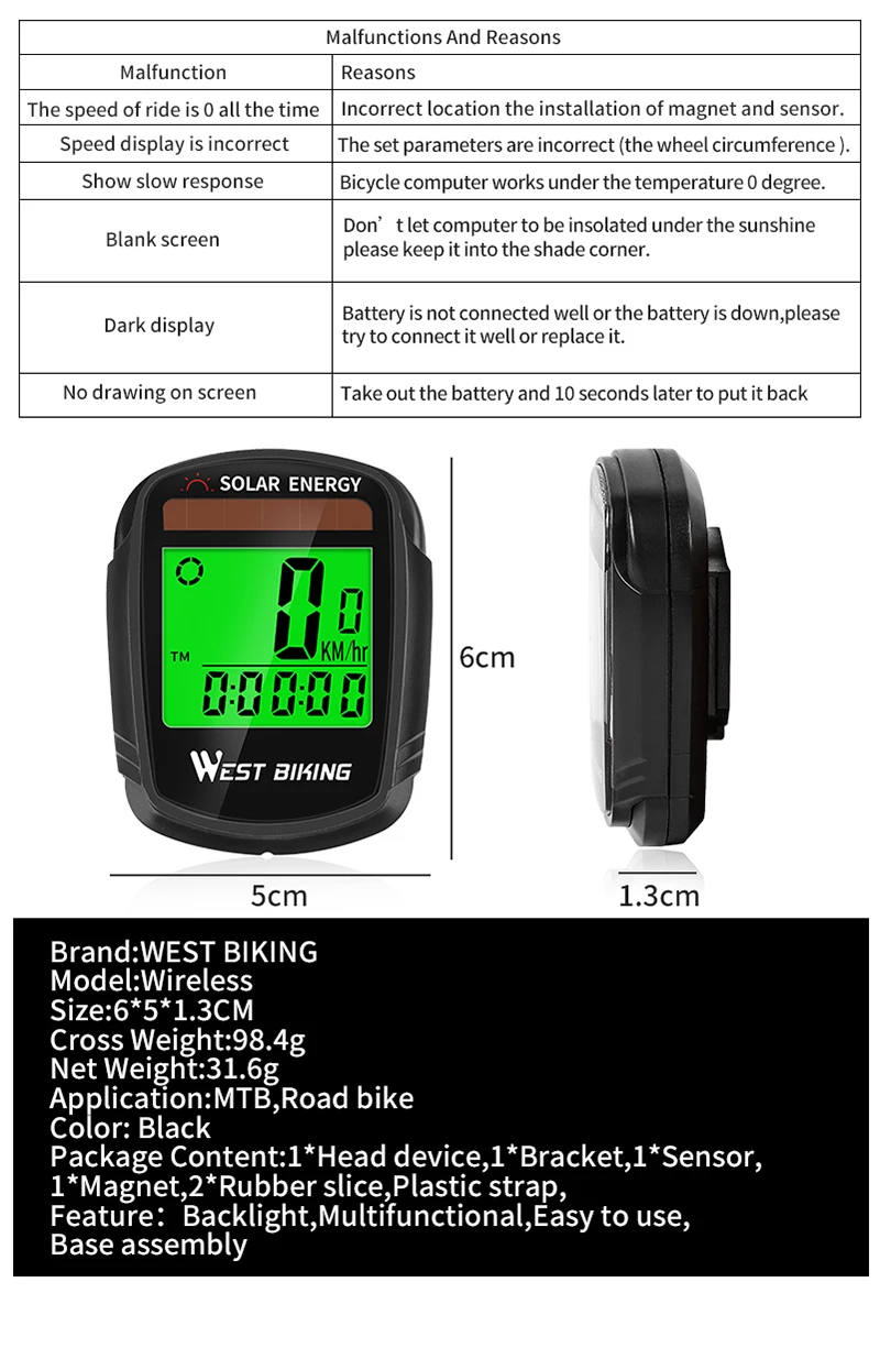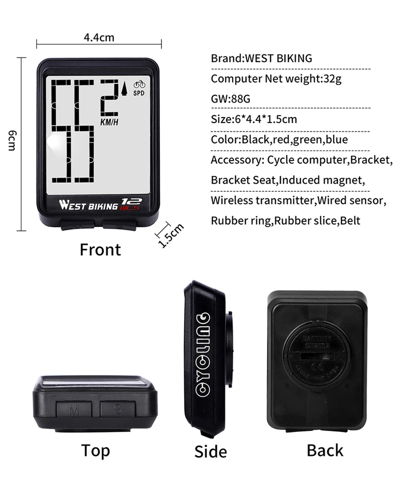 - Bike Computer Function: Wireless, Lightweight, Life Waterproof,