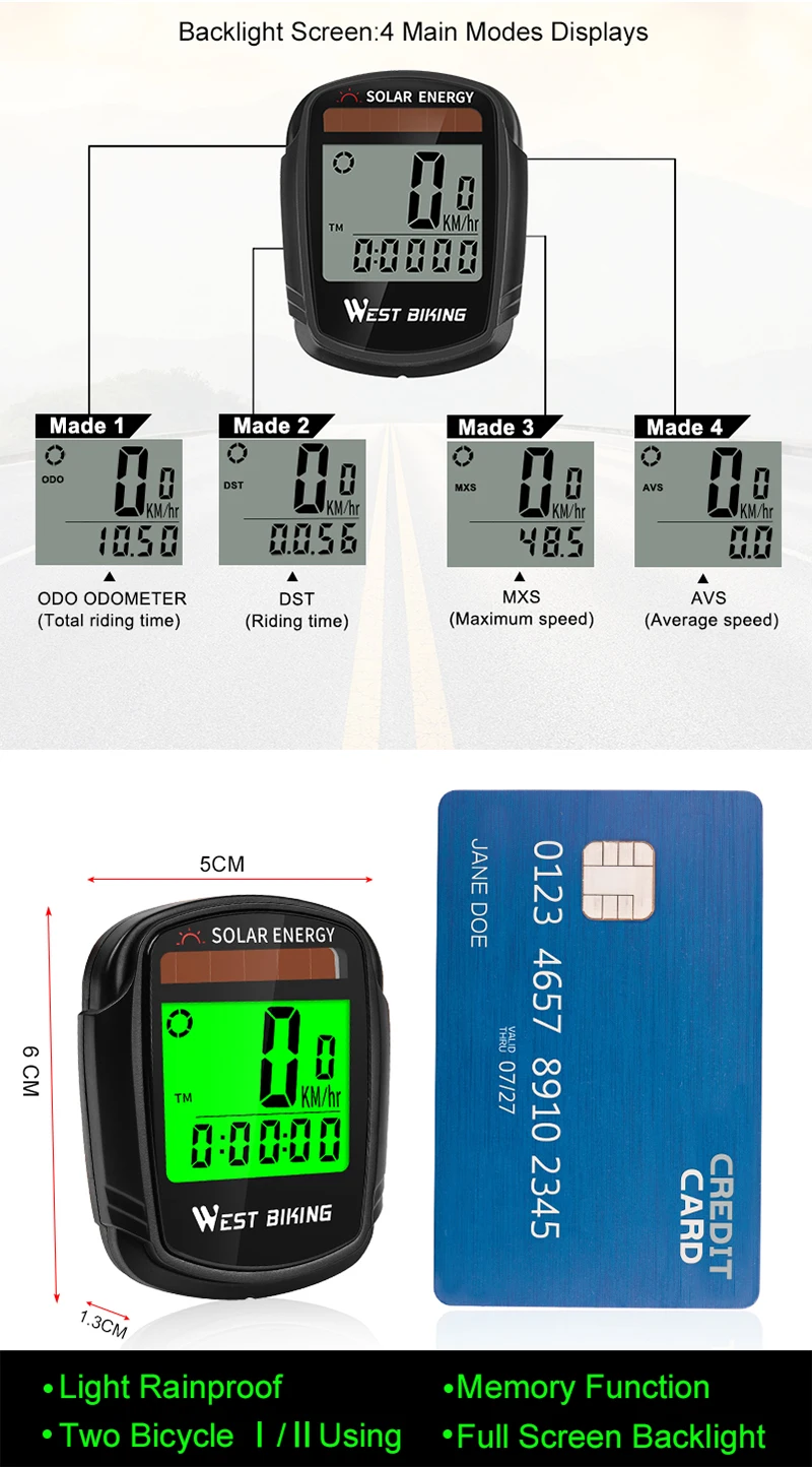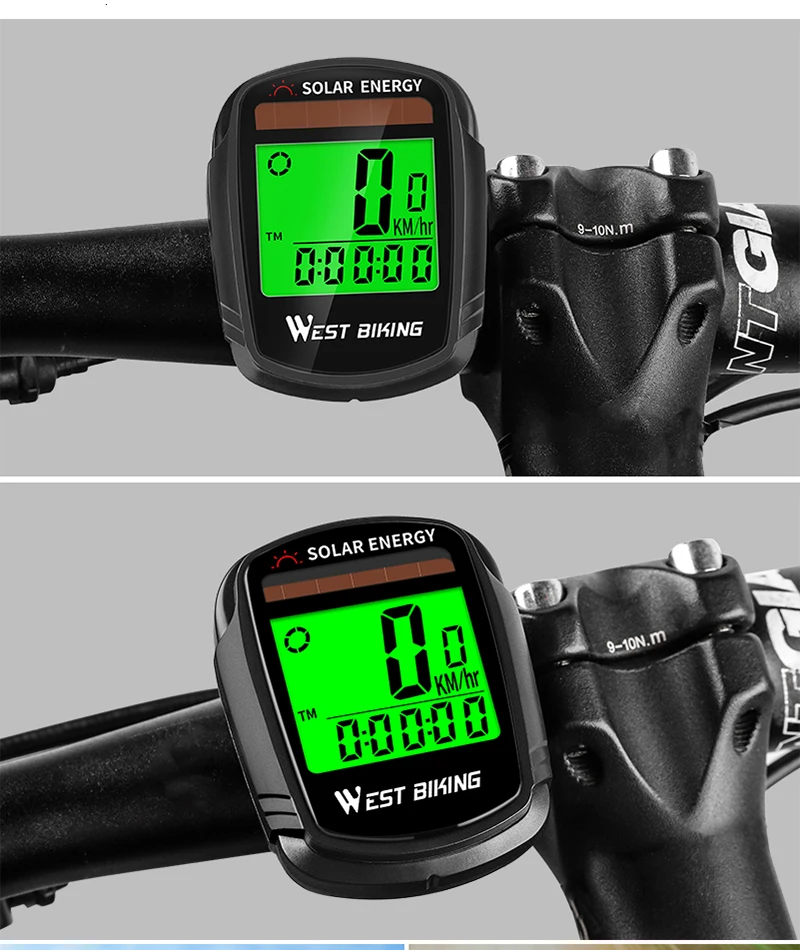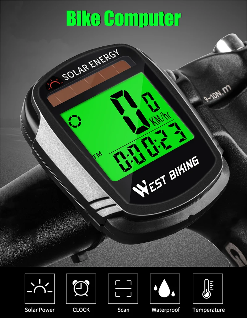 WEST BIKING Solar Powered Bike Computer Wireless Waterproof Speedometer Odometer Auto Wake Cycling Computer