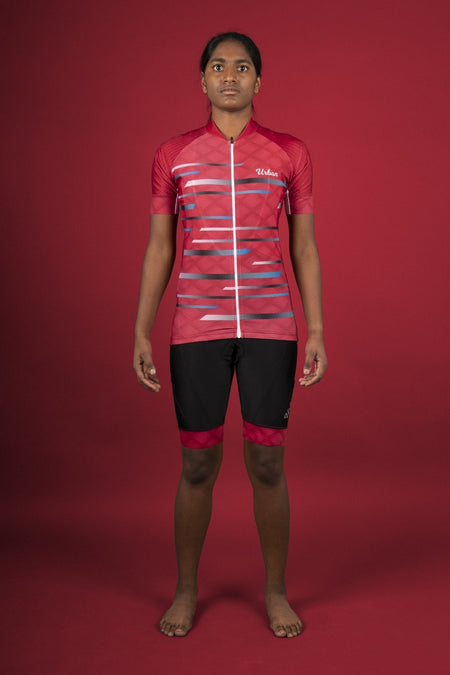 Women's Pro Series Red Cycling Short Sleeve Jerseys / Bib Shorts